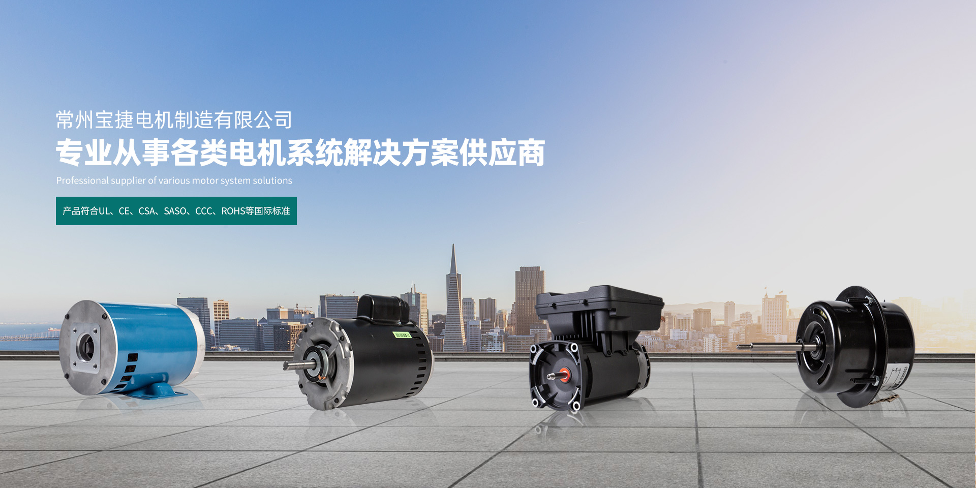 常州寶捷電機(jī)制造有限公司,成立于2001年。專業(yè)從事各類單相交流電機(jī)、高效節(jié)能電機(jī)及機(jī)電一體化產(chǎn)品的設(shè)計開發(fā)、生產(chǎn)制造、銷售服務(wù)的中美合資企業(yè)。產(chǎn)品主要應(yīng)用于各類家用及商用空調(diào)器、各類電器及特種移動車輛行業(yè)。產(chǎn)品符合UL、CE、CSA、SASO、CCC、ROHS等國際標(biāo)準(zhǔn),全部出口歐美等國際市場。公司獲得IATF16949:2016質(zhì)量體系認(rèn)證,擁有UL認(rèn)證實(shí)驗(yàn)室,應(yīng)用SAP精益管理系統(tǒng),為國內(nèi)外客戶提供優(yōu)質(zhì)的產(chǎn)品和服務(wù)!